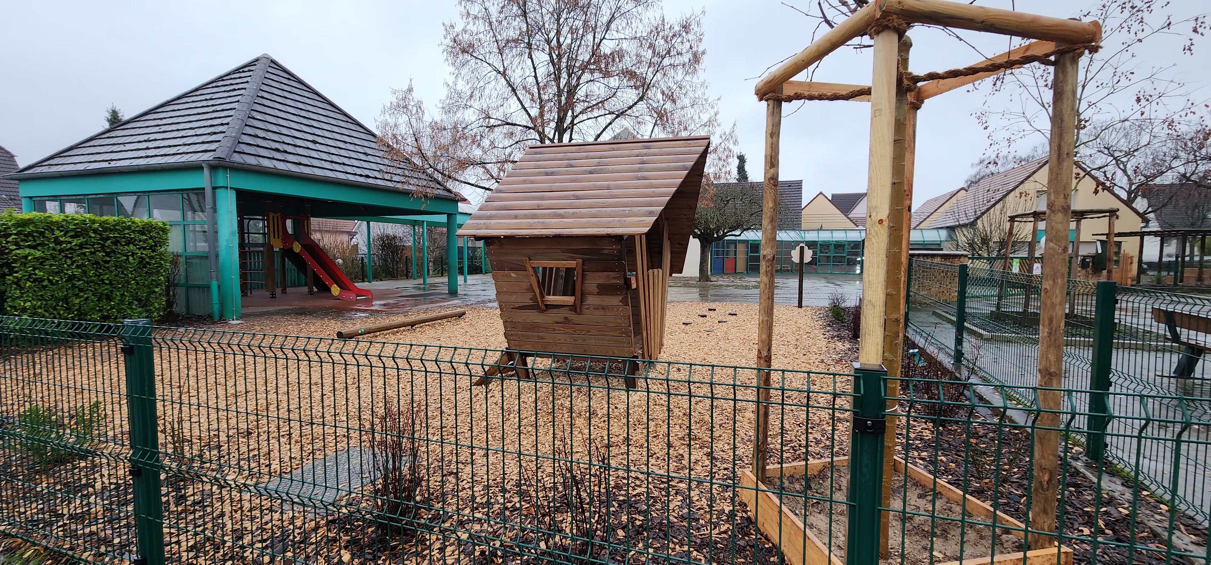 En 2024, la municipalité a lancé le chantier de végétalisation de la cour de l’école maternelle du Haldenbourg, dans l’objectif de remplacer les surfaces artificialisées par des espaces verts permettant de créer un ilôt de fraicheur. Ce fût aussi l’opportunité d’introduire les installations spécifiques pour « l’école du dehors ». Le chantier, financé en partie par l’Agence de l’Eau Rhin Meuse, a permis d’améliorer le bien-être des enfants et de lutter contre les effets du changement climatique par un environnement plus adapté aux fortes chaleurs.
