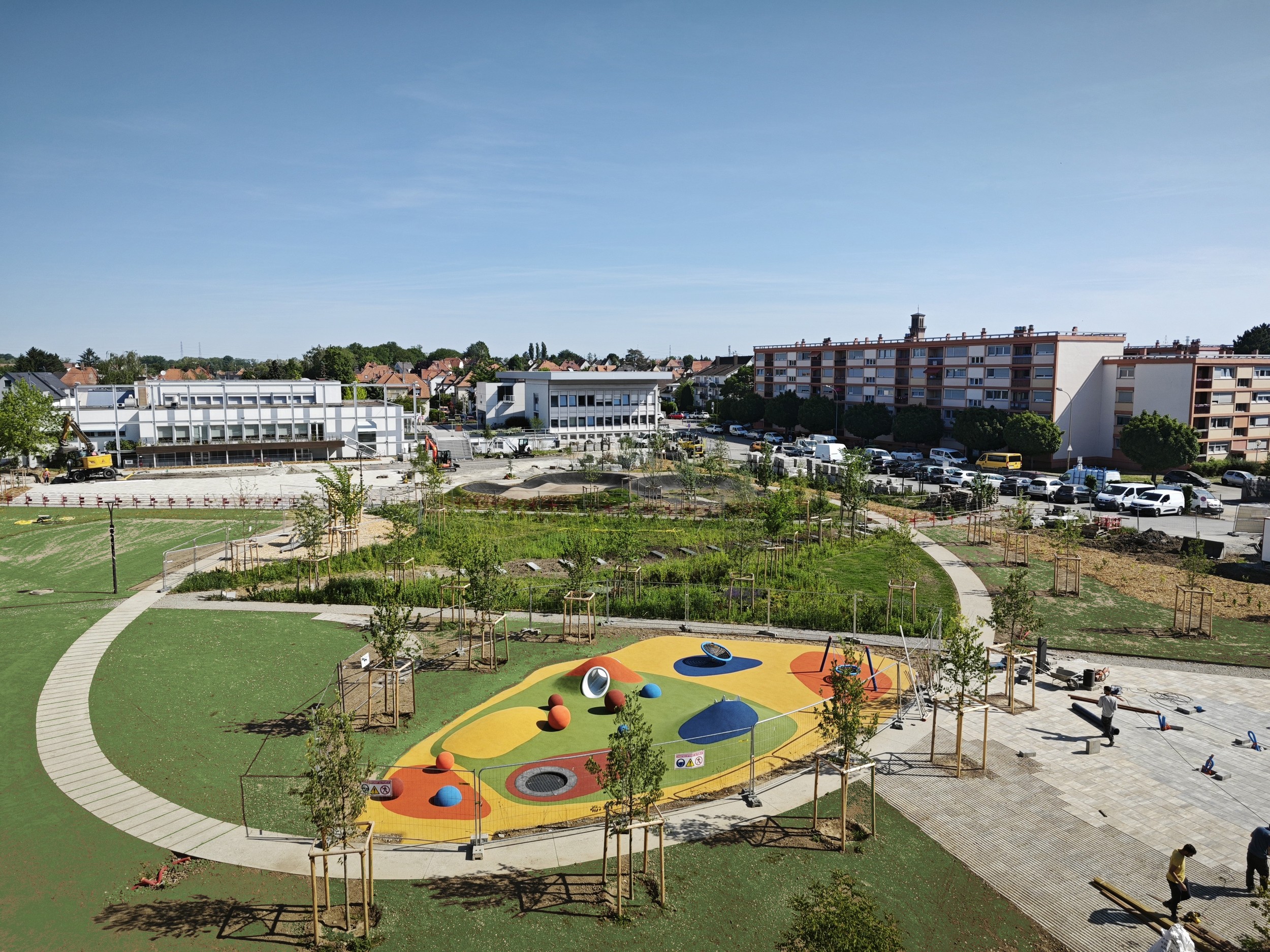 La création de ce grand espace central est la réalisation phare du mandat, transformant l'espace urbain en un véritable pôle de centralité pour Mundolsheim. En combinant un bâtiment plurifonctionnel et un parc intégrant des espaces verts, des aires de jeux et des infrastructures de stationnement, ce lieu répond aux besoins diversifiés des habitants, allant des activités scolaires aux loisirs. De plus, les nombreuses manifestations organisées ici ont contribué à renforcer le lien communal, faisant de cet espace le cœur battant de la ville et un symbole de vitalité et de rassemblement pour tous.